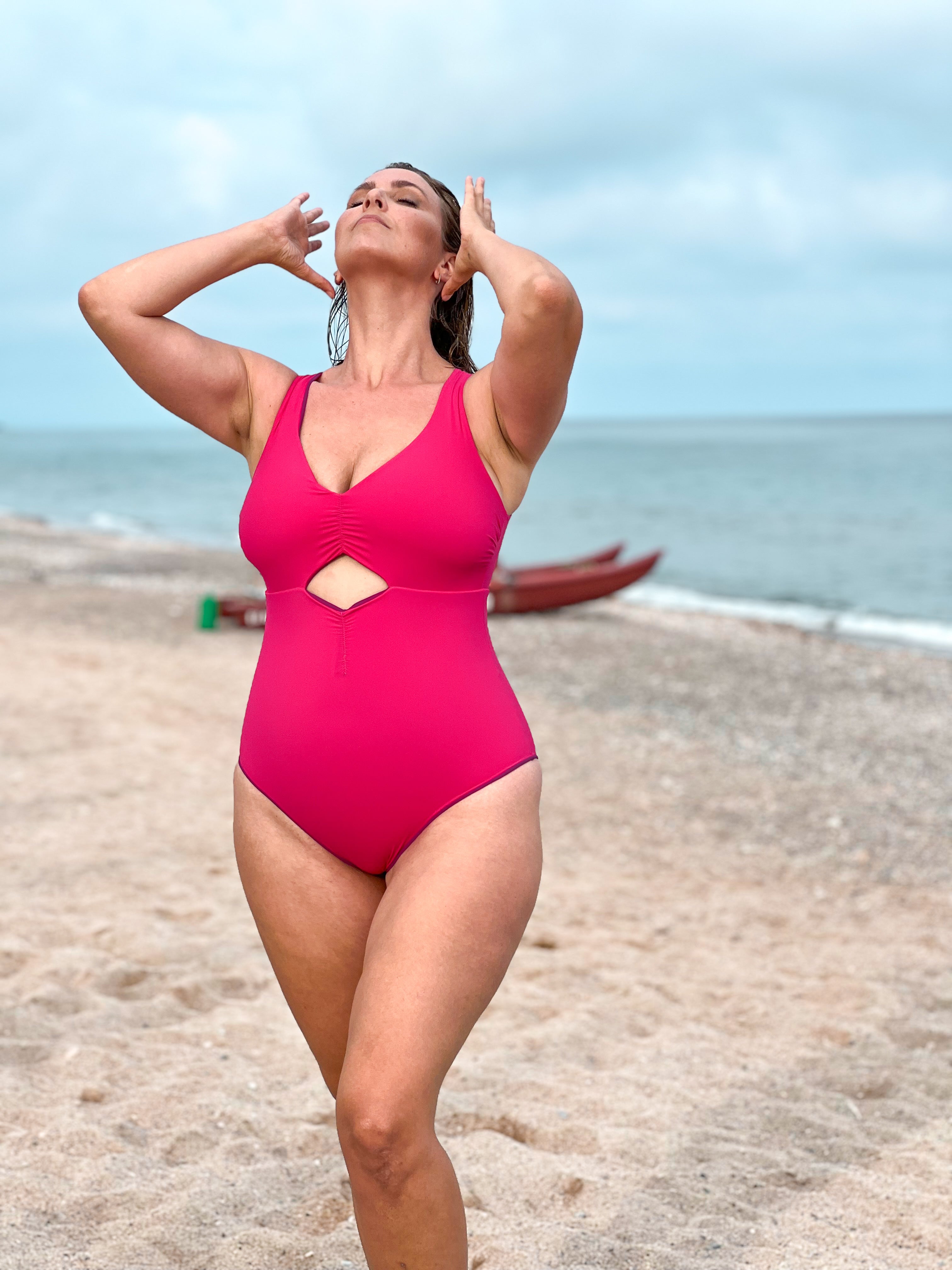 Il tessuto é molto comodo e morbido. Ho seguito la guida taglie per selezionare la mia ed é perfetta. Il modello supporta bene il seno senza pesare sul collo, grazie alla chiusura sulla parte alta della schiena.